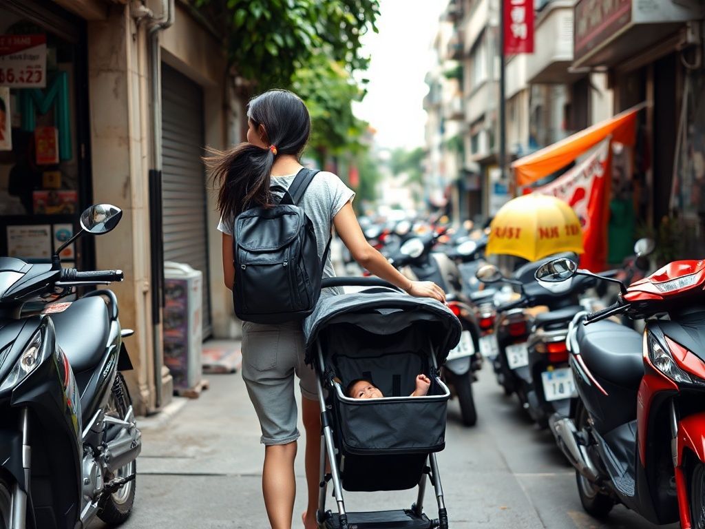 공항 게이트를 나서자마자 훅 끼쳐오는 하노이의 습한 공기에 정신이 아득해졌어요. 아진이는 이미 땀을 흘리며 짜증 섞인 옹알이를 시작했고, 86번 버스 정류장을 찾으려는데 유모차는 짐칸에 싣기조차 버거워 보였습니다.